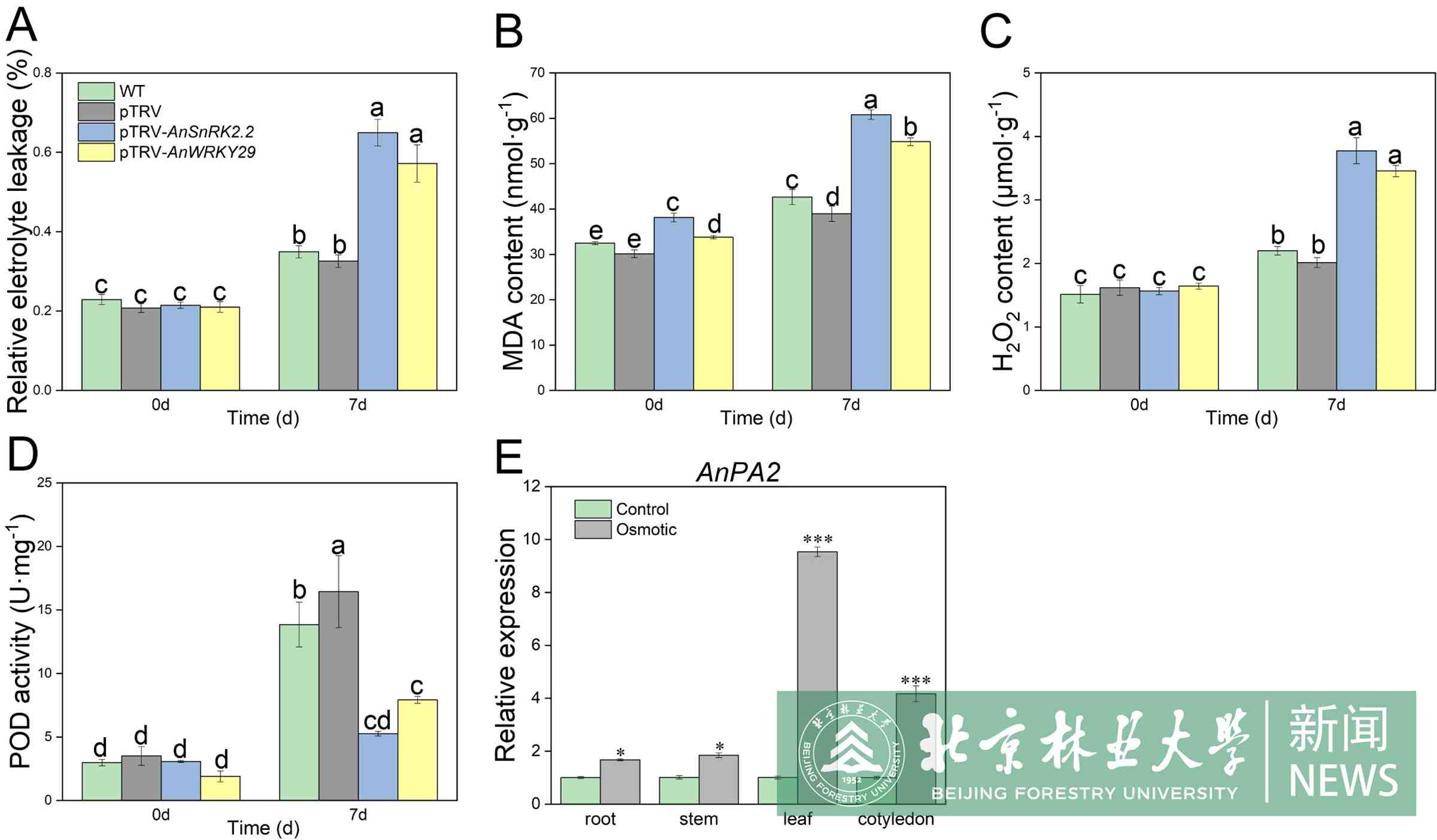此外,由AnPA2编码的38.5 kDa过氧化物酶,属于植物过氧化物酶III类,对减轻新疆沙冬青中由H2O2诱导的膜脂过氧化起着关键作用。该研究揭示了AnWRKY29可以直接调控AnPA2的转录,从而影响过氧化物酶的合成。