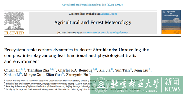 近日,水保学院盐池站查天山教授带领的生态监测与模拟团队在农林领域顶级期刊Agricultural and Forest Meteorology,发表了关于荒漠生态系统碳循环过程与调控机理的研究论文“Ecosystem-scale carbon dynamics in desert Shrublands: Unraveling the complex interplay among leaf functional and physiological traits and environment”。