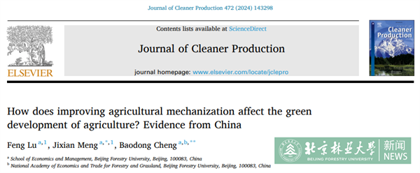 近日,887700葡京线路检测,888葡京集团检测线路,必赢76net线路官网国家林草经贸研究院程宝栋教授课题组在环境科学与生态领域1区TOP期刊Journal of Cleaner Production(SCI影响因子为9.7)在线发表最新研究成果《How does improving agricultural mechanization affect the green development of agriculture? Evidence from China》
