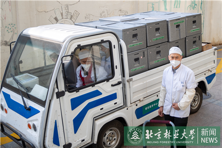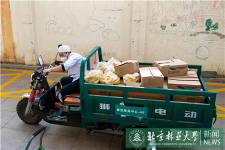负责协调送餐的宋佩泽,是去年刚刚留校加入餐饮队伍的毕业生。送餐的任务非常重,他和同事们忙完一顿紧接着忙下一顿,奔波于各个点位之间,还要兼顾一部分食堂生产的任务。他说,当学生的时候完全不知道,每日三餐的背后需要付出这么多辛苦,现在明白了,餐饮队伍可以自己饿着,但是师生决不能饿着。
