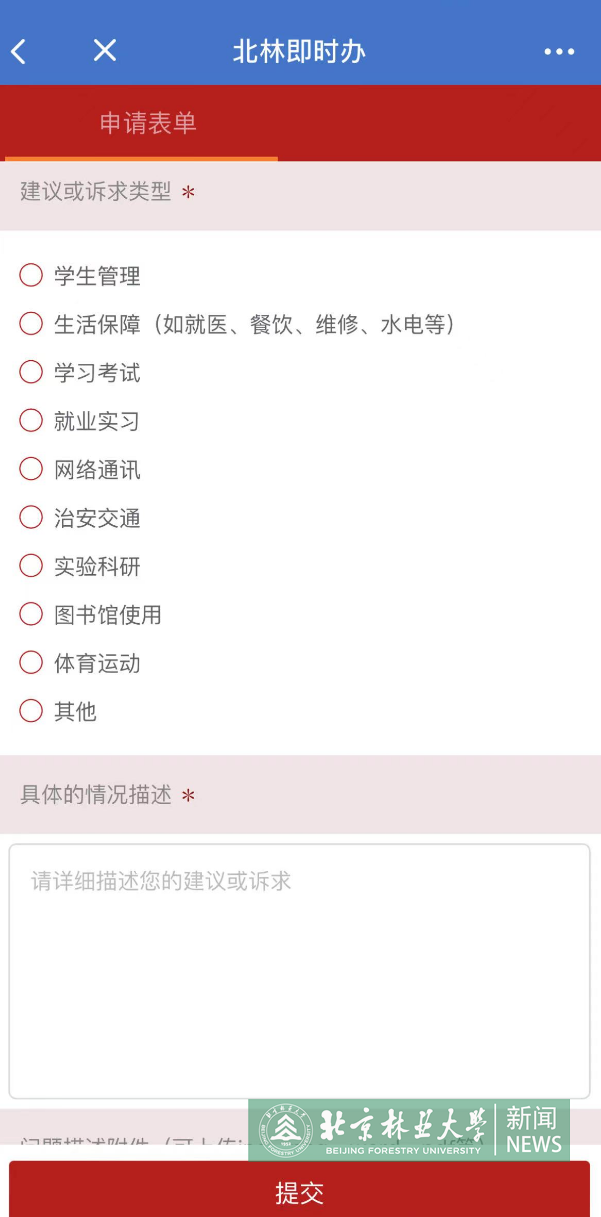 今年9月,我校党委以解决学生诉求为抓手,把解决实际问题的“办事”与解决思想问题的“育人”紧密结合起来,健全完善接诉即办工作机制,成立学生接诉即办工作专班,理顺诉求办理工作路径,出台《学生接诉即办工作规定(试行)》,在数字北林“一表通服务”中开发上线“北林即时办”学生诉求办理网络服务平台。截至目前,平台已累计办理学生管理、生活保障、网络通讯、实验科研、就业实习等各类诉求3397条,这其中既有对有关学校工作的咨询建议,也有日常学习生活的问题反馈。