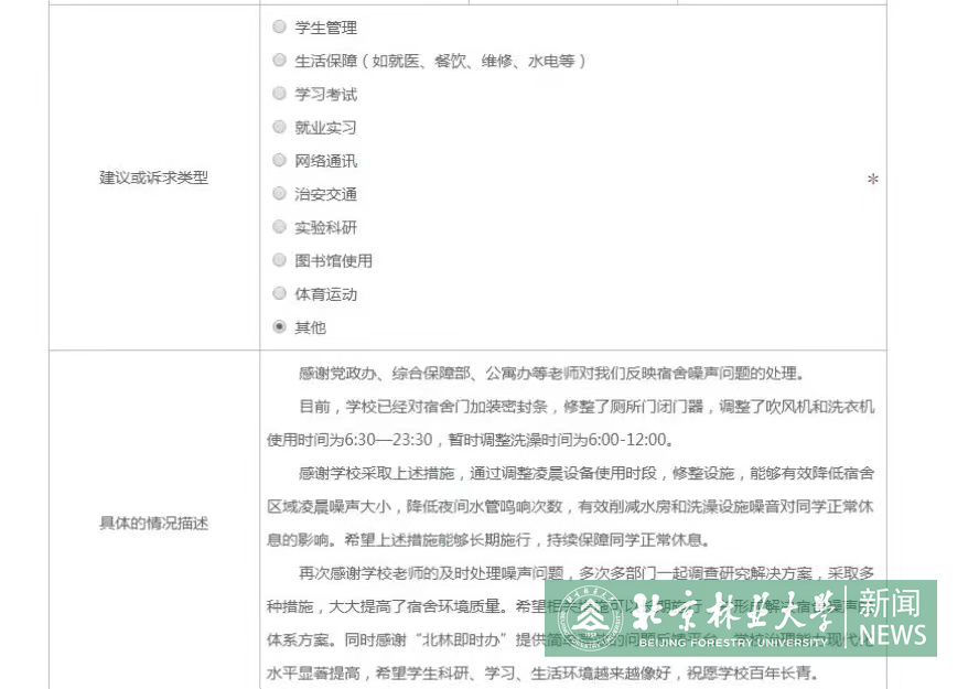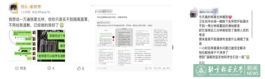 “努力倾听学生声音的北林,爱了!”在学校官微后台,每天都能收到来自学生热情洋溢的留言,而在抖音平台上,我校接诉即办的暖心举措收获了40余万网友点赞,近2万条留言。