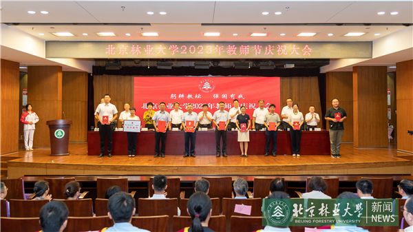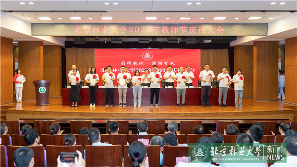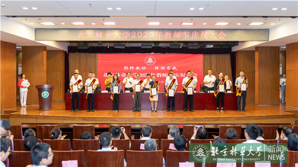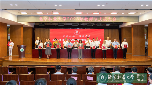 校党委书记王洪元代表校党委向全校教职工致以节日问候,对受到表彰的先进集体和个人表示热烈祝贺,向长期从教的老同志表示由衷的感谢并致以崇高的敬意,向新加入北林的青年教工表示热烈欢迎。他指出,人才培养,关键在教师。在教育强国建设新征程上,“教育强国,北林何为”“生态文明,北林何为”“一校两区,北林何为”的时代命题摆在我们面前,需要我们深入思考,用实际行动书写答卷。他对全体教师提出三点希望,一是深刻认识教师在教育高质量发展中的关键作用,做教育强国建设的“先锋队”,以三尺讲台为主阵地,发挥高校教师的学科专业优势,不断提升教育教学质量,投身重大科技攻关,为强国建设提供教育、科技、人才全方位支持;二是深刻认识北林教师肩负生态文明建设历史责任,做美丽中国建设的“排头兵”,瞄准生态文明建设需要,依托学科优势和特色,大力加强生态文明宣传教育和绿色科技创新,为人与自然和谐共生的现代化、美丽中国和绿色北京建设、有力支撑山水林田湖草沙系统治理方面再立新功;三是深刻认识北林在实现高质量发展中的历史方位,做“一校两区”建设的“奠基石”,紧紧抓住承建“国家林草种质资源库”和“全国重点实验室”这一难得机遇,有效利用世界一流科研资源和创新要素,追求真学问,研究真问题,培养一流人才、产出一流成果,为破解国家“卡脖子”难题、提升科技自立自强凸显北林贡献。